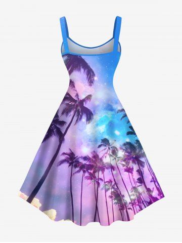Graphic Dresses > Plus Size Coconut Tree Galaxy Ombre Print Hawaii Tank Dress