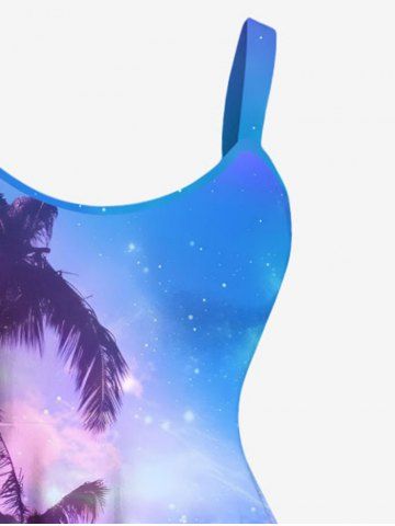 Plus Size Coconut Tree Galaxy Ombre Print Hawaii Tank Dress - Purple - Xs