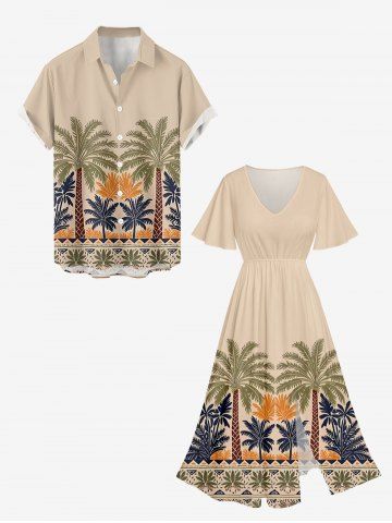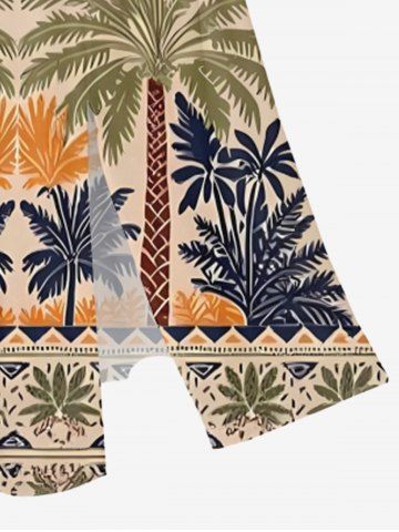 Plus Size Coconut Tree Geo Pattern Print Split Hawaii Midi Dress - Tan - Xxs