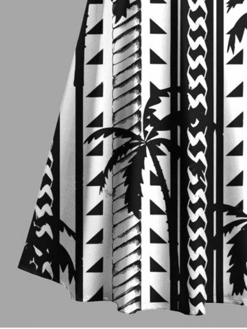 Plus Size Coconut Tree Geometric Graphic Print Hawaii Cold Shoulder Crisscross A Line Maxi Dress - Black - M