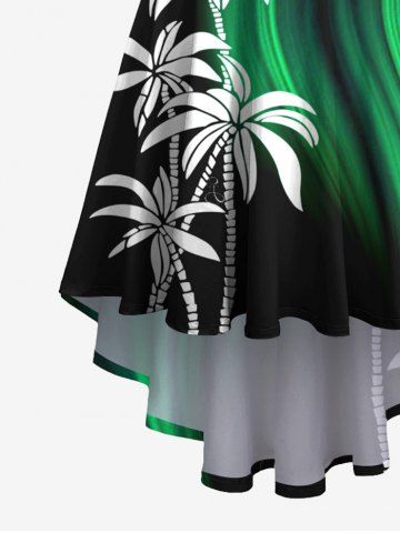 Plus Size Coconut Tree Glitter Curve Light Beam 3D Print Hawaii High Low Cami Dress - Black - S