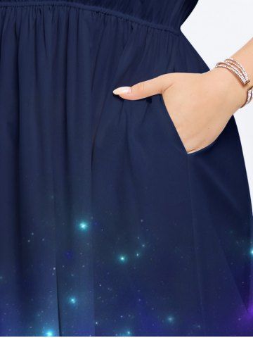 Plus Size Coconut Tree Glitter Galaxy Print Hawaii Split Pocket A Line Midi Dress - Black - 4x