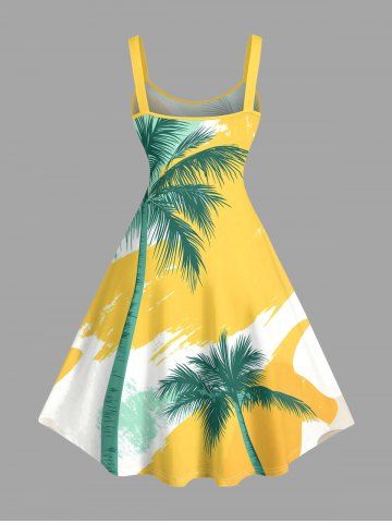 Plus Size Coconut Tree Graffiti Colorblock Print Hawaii Tank Dress - Yellow - L