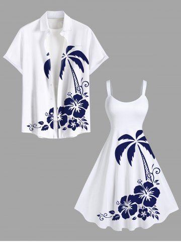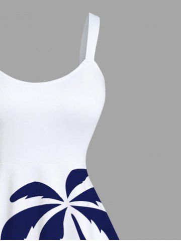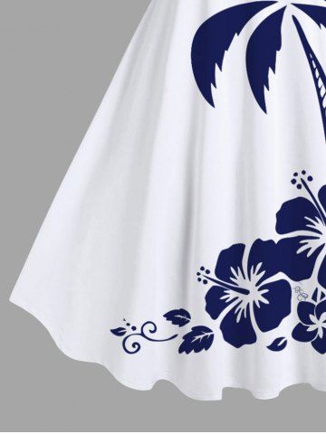 Plus Size Coconut Tree Hibiscus Floral Two Tone Print Hawaii A Line Tank Dress - White - 6x