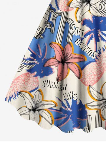 Plus Size Coconut Tree Hibiscus Flower Bus Pineapple Cactus Print Hawaii A Line Tank Dress - Light Blue - 4x