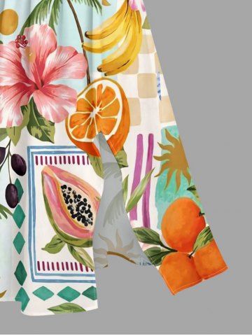 Graphic Dresses > Plus Size Coconut Tree Hibiscus Flower Fruit Sun Print Hawaii Split Pocket A Line Midi Dress