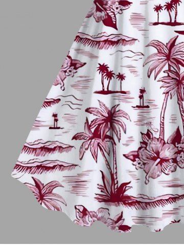 Plus Size Coconut Tree Hibiscus Flower Sea Print Hawaii A Line Tank Dress - Red - 6x