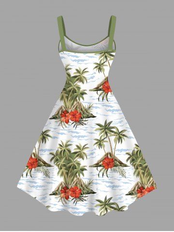 Graphic Dresses > Plus Size Coconut Tree Hibiscus Flower Sea Waves Print Hawaii Tank Dress