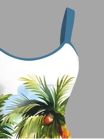 Plus Size Coconut Tree Hibiscus Flower Seascape Print Hawaii A Line Tank Dress - Blue - S