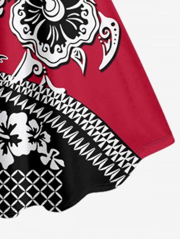 Plus Size Coconut Tree Hibiscus Flowers Geometric Pattern Print Hawaii Tank Dress - Red - 4x