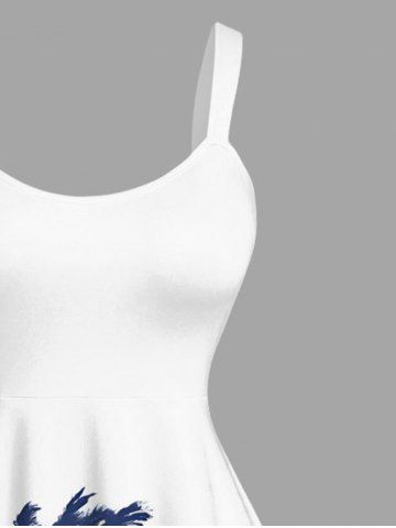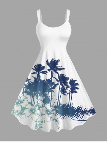 Plus Size Coconut Tree Hibiscus Flowers Leaf Print Hawaii Tank Dress - White - 1x