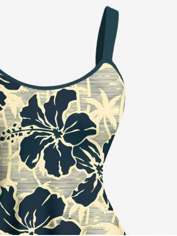 Plus Size Coconut Tree Hibiscus Flowers Print Hawaii Tank Dress - Beige - 4x