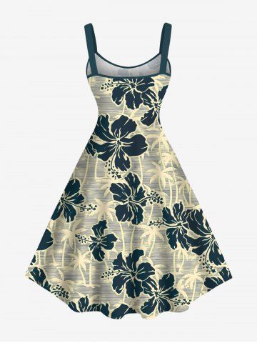 Graphic Dresses > Plus Size Coconut Tree Hibiscus Flowers Print Hawaii Tank Dress