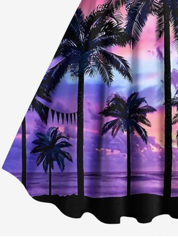 Plus Size Coconut Tree Illumination Ombre Galaxy Print Hawaii A Line Dress - Purple - Xs