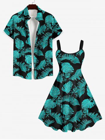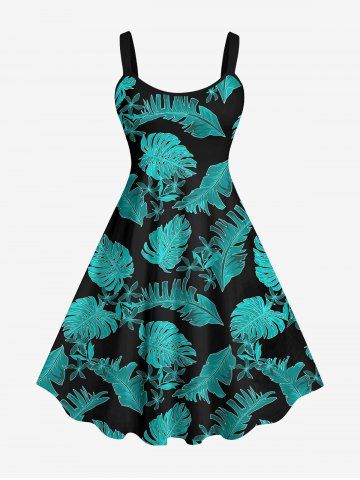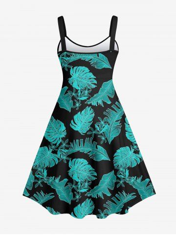 Hawaii Plus Size Coconut Tree Leaf Print Backless A Line Tank Dress - Black - 4x