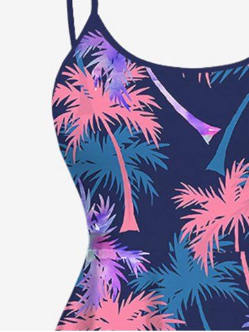 Hawaii Plus Size Coconut Tree Leaf Print High Low Cami Dress - Blue - 5x