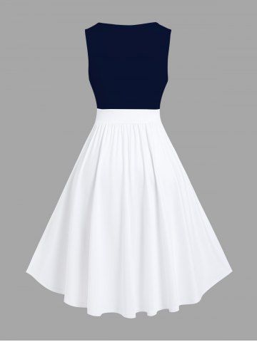 Plus Size Coconut Tree Letter Tie Dye Tiger Sunglasses Print Hawaii Vintage Swing A Line Dress - White - 3x