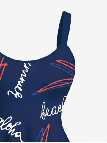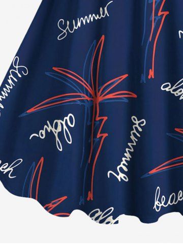 Plus Size Coconut Tree Letters Print Hawaii A Line Tank Dress - Navy Blue - 6x