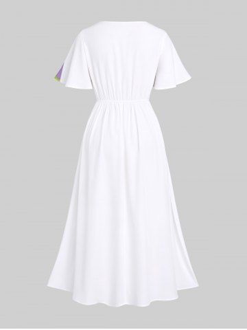 Plus Size Coconut Tree Letters Print Hawaii Split Pocket A Line Midi Dress - White - 2x