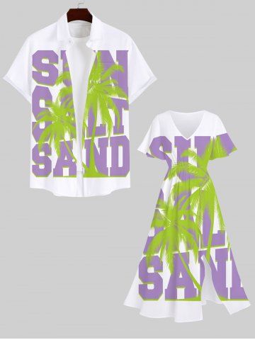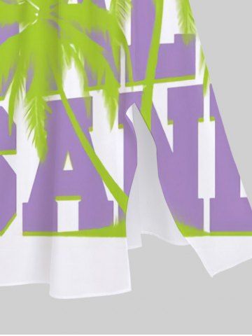 Plus Size Coconut Tree Letters Print Hawaii Split Pocket A Line Midi Dress - White - 4x