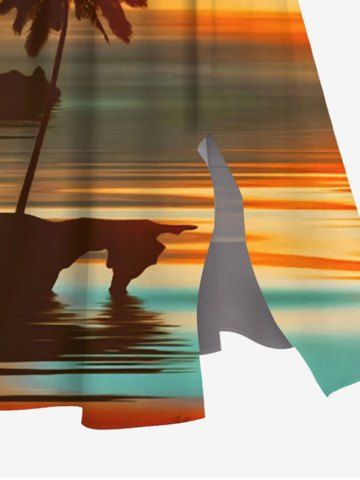 Plus Size Coconut Tree Lightning Ombre Dusk Print Hawaii Split Pocket A Line Midi Dress - Light Brown - Xxs