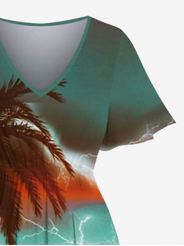 Graphic Dresses > Plus Size Coconut Tree Lightning Ombre Dusk Print Hawaii Split Pocket A Line Midi Dress