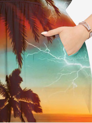 Plus Size Coconut Tree Lightning Ombre Dusk Print Hawaii Split Pocket A Line Midi Dress - Light Brown - 4x
