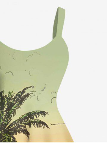 Plus Size Coconut Tree Mermaid Seascape Print Hawaii Tank Dress - Green - 1x