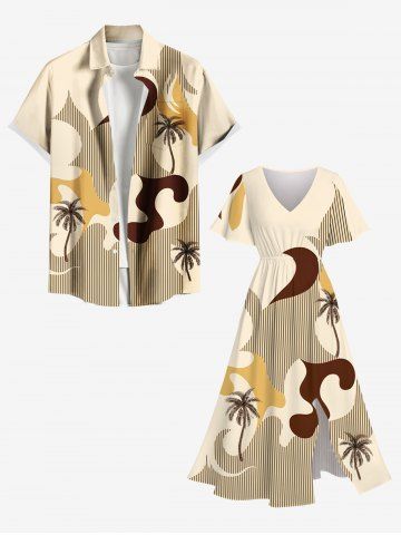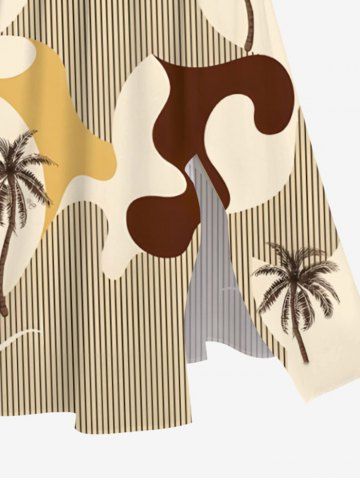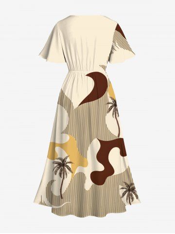 Plus Size Coconut Tree Moon Beach Print Hawaii Split Pocket A Line Midi Dress - Light Coffee - M