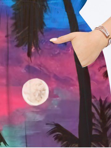 Plus Size Coconut Tree Moon Colorful Ombre Colorblock Sky Print Split Hawaii Midi Dress - Multi-a - M