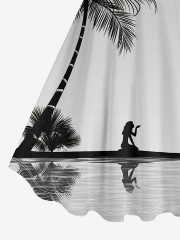 Plus Size Coconut Tree Moon Lady Reflection Print Hawaii Tank Dress - Light Gray - 4x