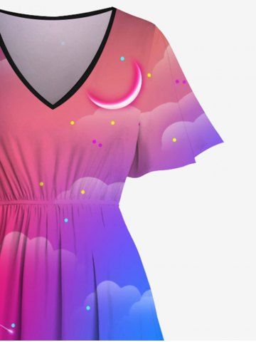 Plus Size Coconut Tree Moon Pattern Ombre Print Split Hawaii Dress - Multi-a - 6x