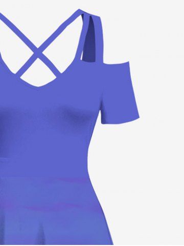 Plus Size Coconut Tree Moon Sea Ombre Sky Print Cold Shoulder Crisscross Hawaii Maxi Dress - Purple - Xs
