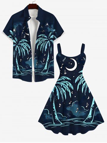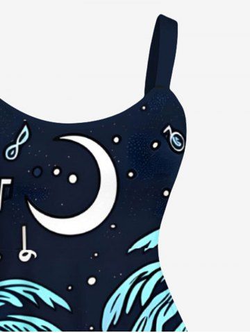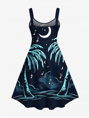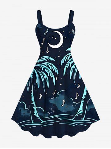 Graphic Dresses > Plus Size Coconut Tree Moon Star Music Notes Print Hawaii Tank Dress