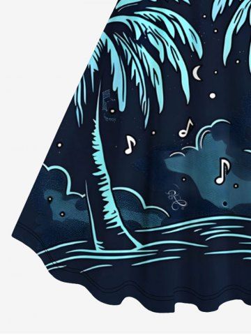Plus Size Coconut Tree Moon Star Music Notes Print Hawaii Tank Dress - Black - L