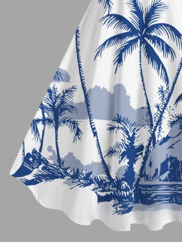 Plus Size Coconut Tree Mountain Cloud Print Hawaii Tank Dress - White - 1x