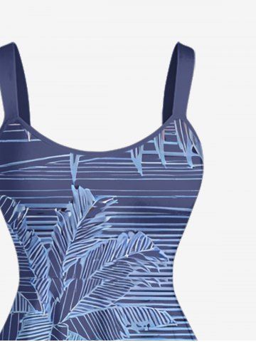 Graphic Dresses > Plus Size Coconut Tree Mountain Sea Ombre Line Print Hawaii A Line Dress
