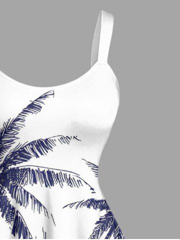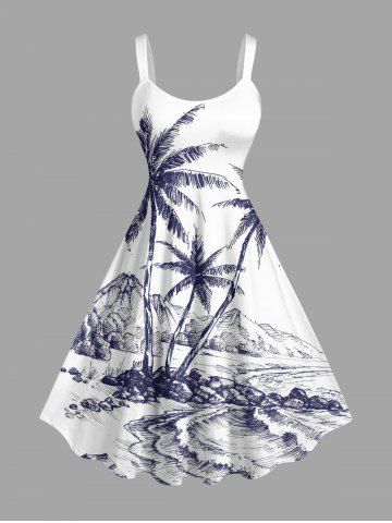 Plus Size Coconut Tree Mountain Seascape Print Hawaii Tank Dress - Deep Blue - S