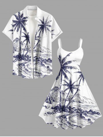 Plus Size Coconut Tree Mountain Seascape Print Hawaii Tank Dress - Deep Blue - 6x