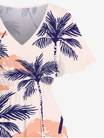 Plus Size Coconut Tree Mountains Colorblock Print Hawaii Split Midi Dress - Multi-a - 4x