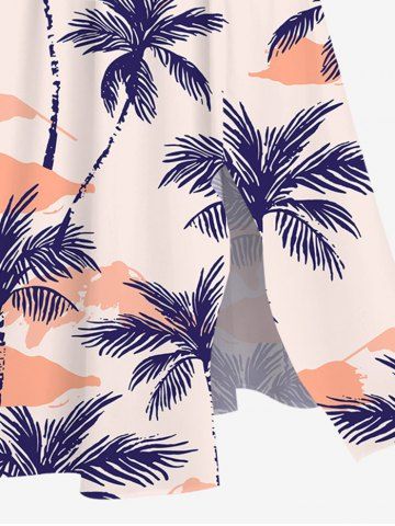 Graphic Dresses > Plus Size Coconut Tree Mountains Colorblock Print Hawaii Split Midi Dress