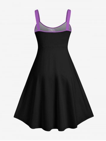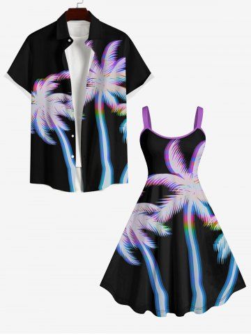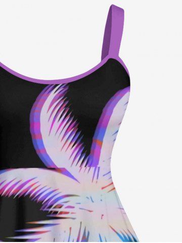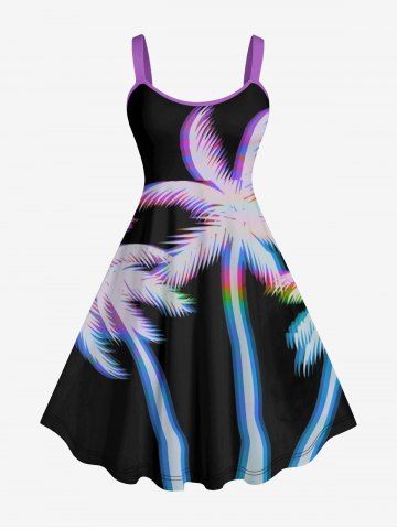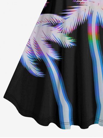 Plus Size Coconut Tree Neon Light Print Hawaii Tank Dress - Black - L