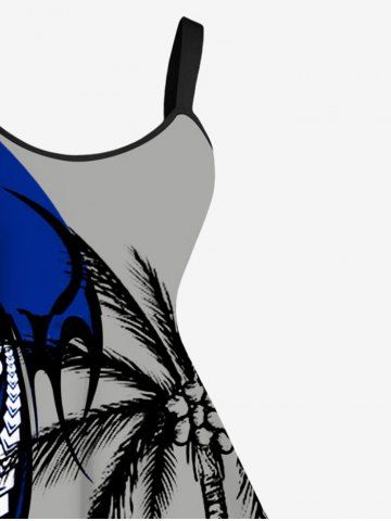 Plus Size Coconut Tree Octopus Colorblock Print Hawaii Tank Dress - Light Gray - L