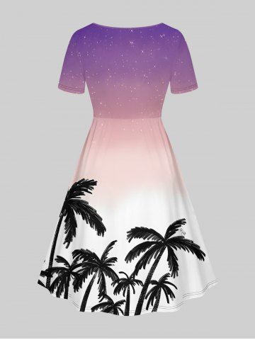 Plus Size Coconut Tree Ombre Colorblock Bird Print Cinched Hawaii Dress - Multi-a - 3x