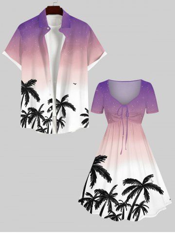 Plus Size Coconut Tree Ombre Colorblock Bird Print Cinched Hawaii Dress - Multi-a - 5x