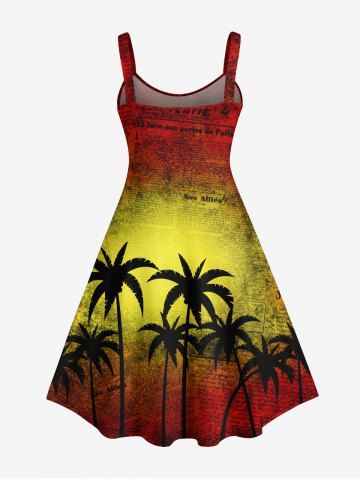 Plus Size Coconut Tree Ombre Colorblock Newspaper Print Hawaii Tank Dress - Red - 3x