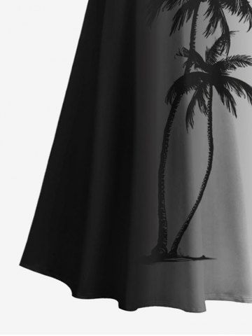 Plus Size Coconut Tree Ombre Colorblock Print Cold Shoulder Crisscross Hawaii Maxi Dress - Black - S