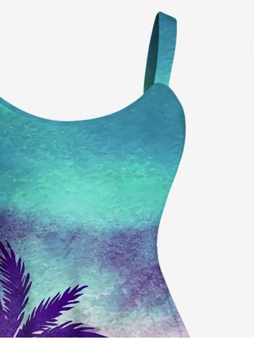 Plus Size Coconut Tree Ombre Colorblock Print Hawaii Tank Dress - Multi-a - S