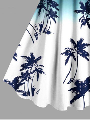 Plus Size Coconut Tree Ombre Colorblock Print Hawaii Tank Dress - Green - L