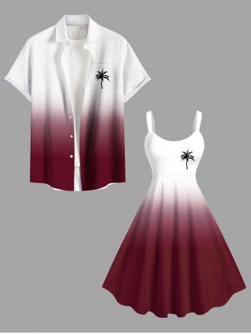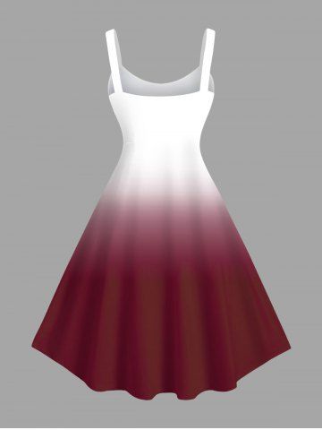 Plus Size Coconut Tree Ombre Colorblock Print Hawaii Tank Dress - Red - Xxs